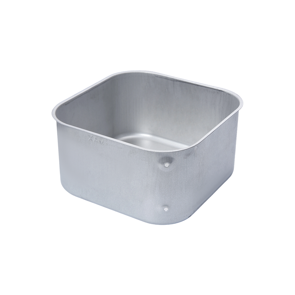 يتم تصنيع هذه الحاوية المربعة المسحوبة بعمق باستخدام تقنية السحب العميق المتقدمة، مما يضمن تشكيلًا سلسًا من قطعة واحدة بدون أي طبقات ملحومة.